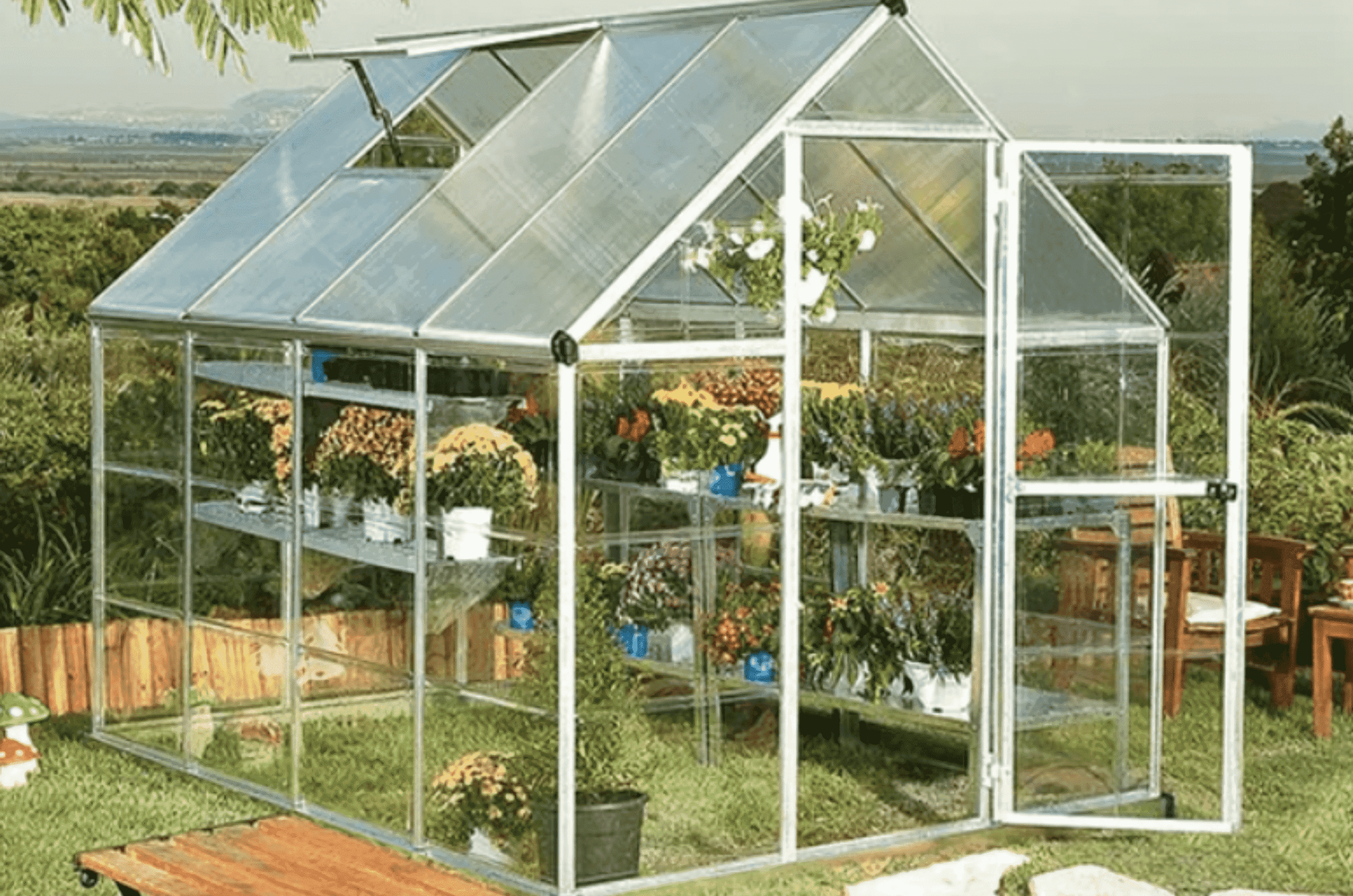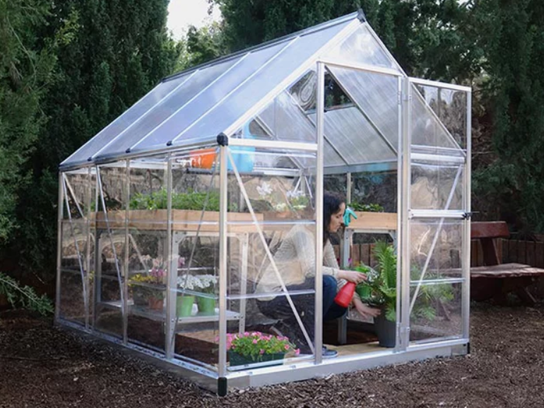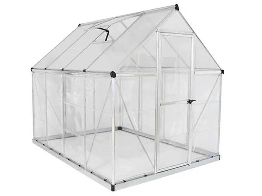 • חממה ביתית, קירוי פוליקרבונט מוגן UV (כפול דופן בגג ושקוף בקירות ).