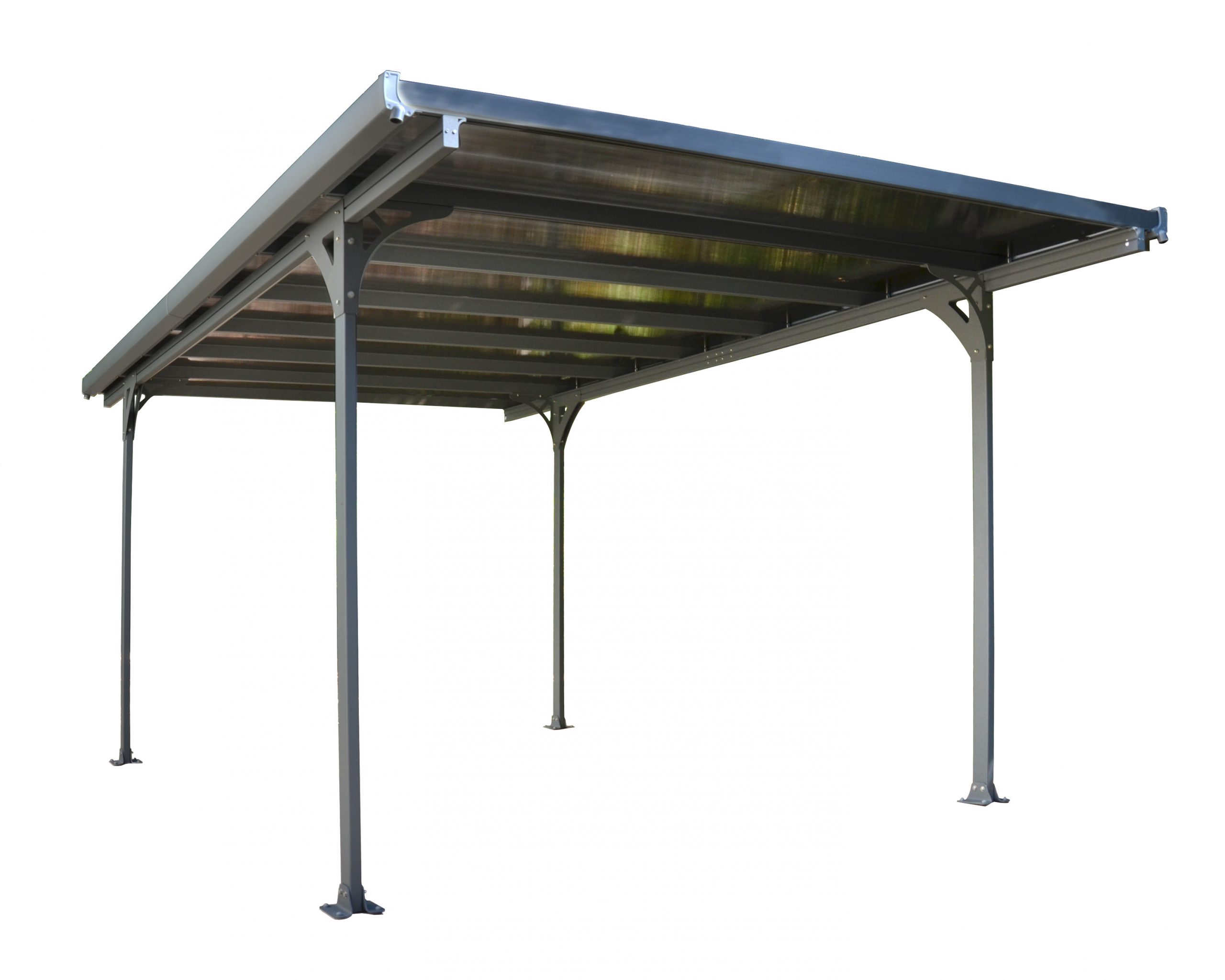 החניה מורכבת משלד אלומיניום חזק במיוחד, קירוי העשוי מלוח פוליקרבונט כפול דופן מוגן UV בגוון ברונזה.