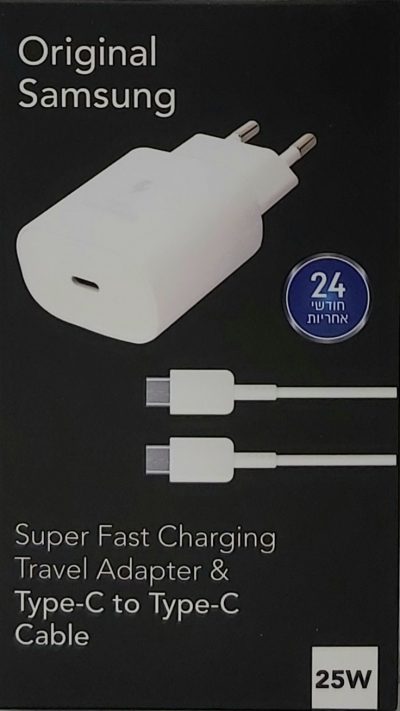 מטען קיר מקורי 25W Samsung הכולל כבל USB Type C ל USB Type C
