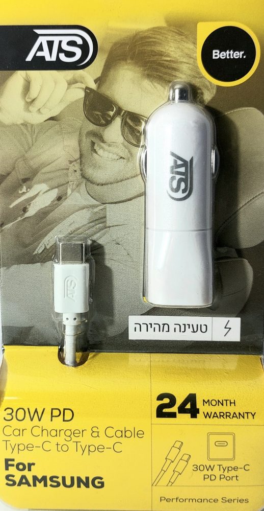 מטען רכב +כבל TYPE C טעינה מהירה 30W