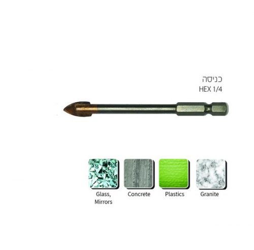 מקדח לקרמיקה/גרניט/פלסטיק/זכוכית לאימפקט ממידה 4-10 מ"מ