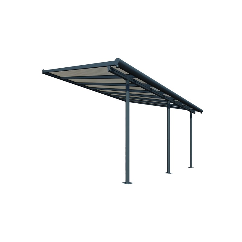 קירוי פוליקרבונט כפול דופן מוגן UV בגוון ברונזה ובעל 15% העברת אור, המאפשר תאורה טבעית רכה בשעות היום.